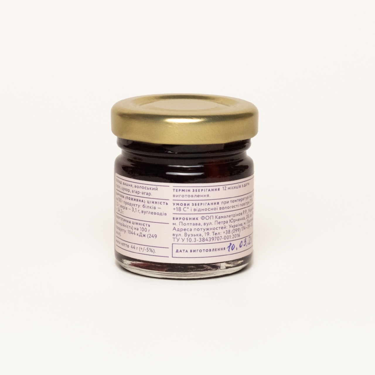 Склад: вишня, волоський горіх, цукор, агар-агар.